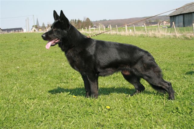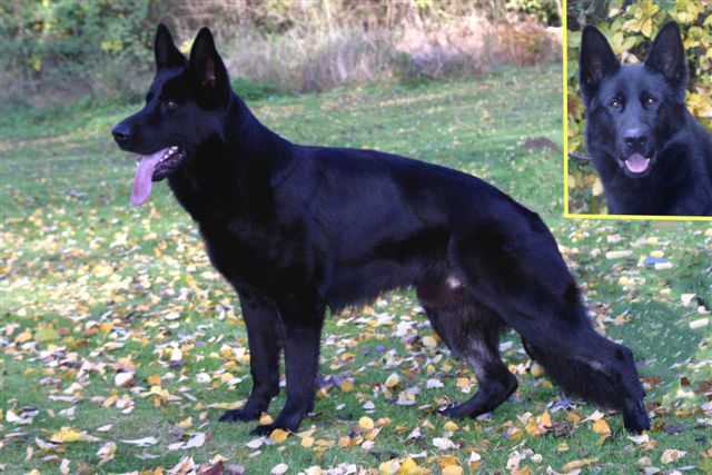 Gesamteindruck: Großrahmiger, dunkel pigmentierter Rüde, angenehmes selbstsicheres Verhalten