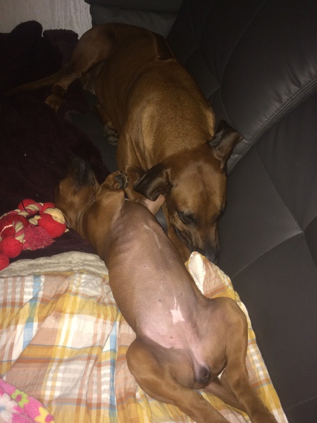 Skylar ist am 25.08.2018 in meinem Kennel geboren. Schon einen Tag nach der Geburt wurde ich auf Sie Aufmerksam. Nach weiteren 3 Wochen, hatten wir zwei ein besonderes Erlebnis. Skylar und ich saßen gemeinsam in der Kudde und ich streichelte Sie. Plötzlich hob Sie den Kopf und schaute mir direkt tief in die Augen und dann in die Seele. Sowas hatte ich vorher noch nicht erlebt. Mein Körper reagierte mit einem heftigen Herzschlag. Lange blickte Sie mich noch direkt an. Dann legte Sie sich behutsam auf die Seite und schlief ein. Nun, was soll ich noch sagen.... Die kleine Rakete bereichert mein Rudel und mein Leben, trotz manch grauem Haar ;o)