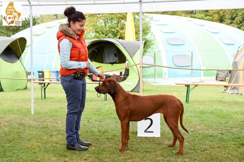 Gesamteindruck: typvolle selbstbewusst großrahmige Hündin, freundlich und sicher im Verhalten