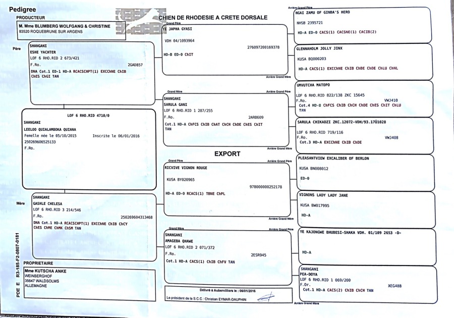 Zuchtbuch Nr. LOF 6 RHO RID.3074/0